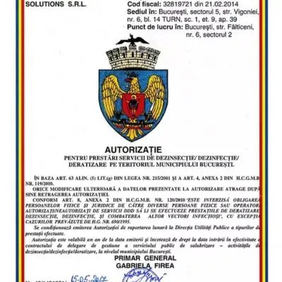 PestControl este una dintre primele firme din Bucuresti autorizate de Primaria Capitalei inca de la momentul in care autorizarea pentru activitatile DDD (deratizare, dezinsectie, dezinfectie) a devenit obligatorie si reglementata oficial de PMB. Aceasta recunoastere timpurie certifica profesionalismul si seriozitatea companiei noastre inca din primii pasi ai industriei.